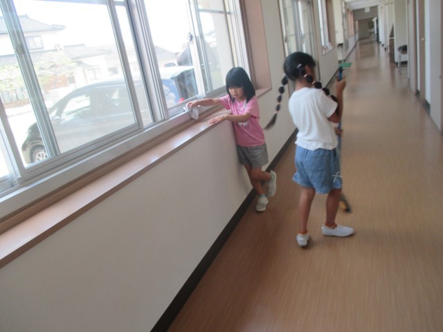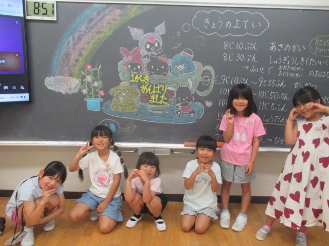 初めてのことにも一生懸命がんばってきた1年生。終業式や、その後のMeetでは、先生の話を真剣に話を聞いていました。また、教室や玄関の掃除を進んで行っていました。1学期、とてもよくがんばった素敵な6人です。