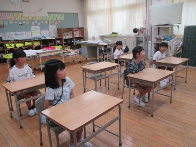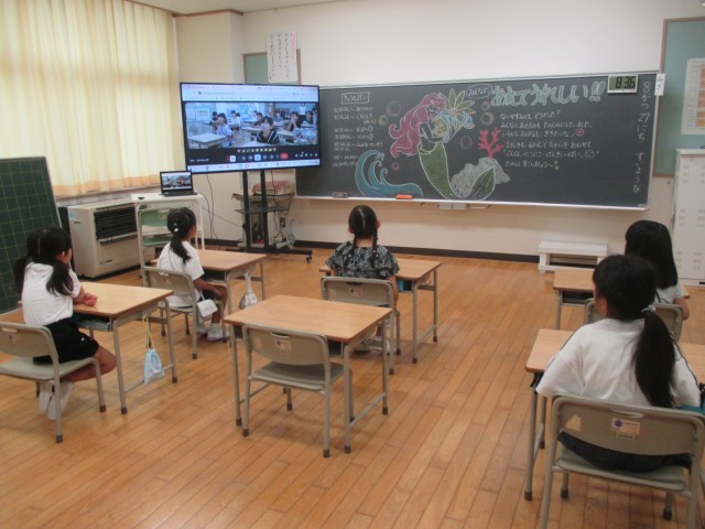 始業式では、オンラインでも真剣に話を聞く姿が立派でした。その後、教室で夏休みにがんばった研究を紹介しあったり、ミニゲームをしたりして楽しく過ごしました。6人みんなの話や表情から、それぞれが充実したよい夏休みを過ごしたことを感じました。