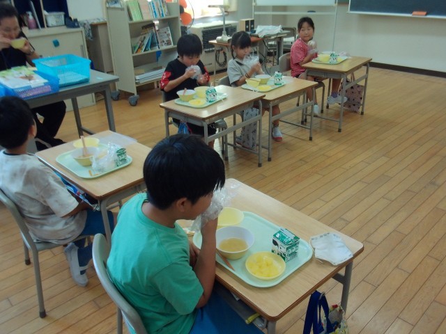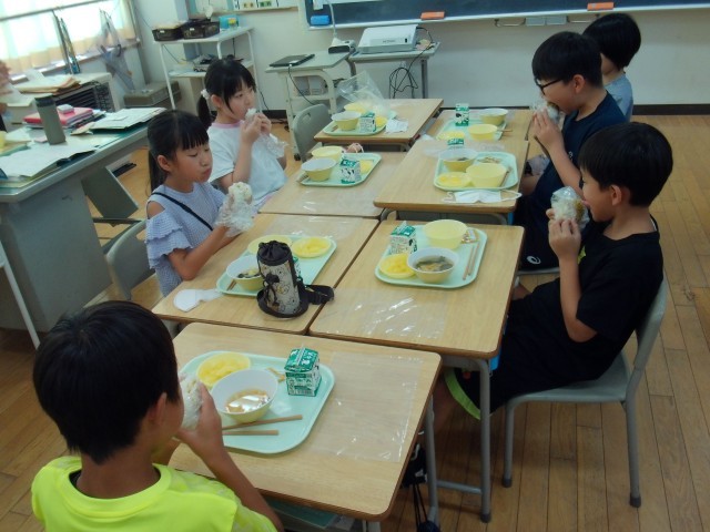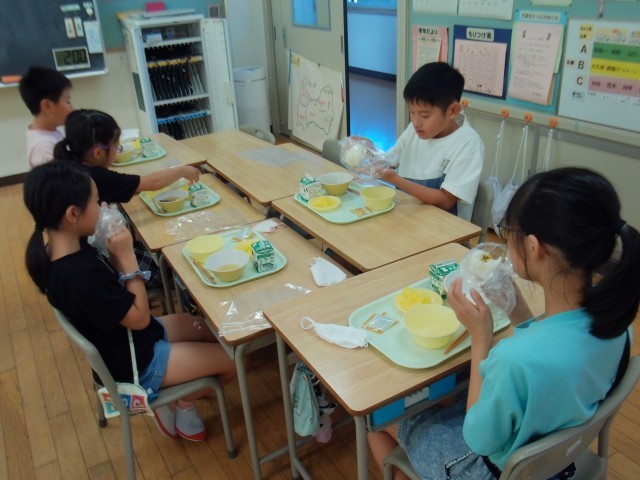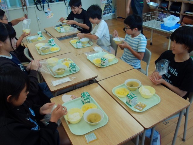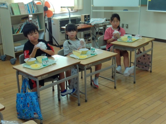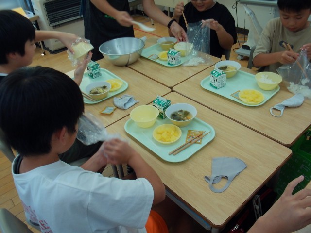 災害時には水はとても貴重なため、ビニール袋を食器の代わりとして使うことで洗い物が減り、水を節約することができます。子供たちは、ご飯をビニール袋に入れて上手におにぎりを作り、手で触れないように袋からそのまま食べていました。