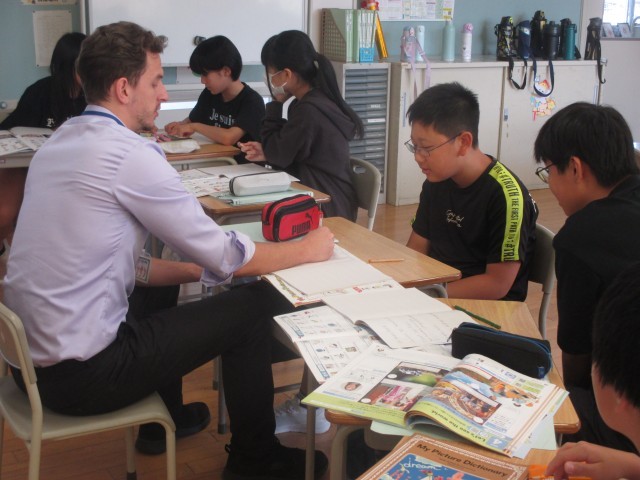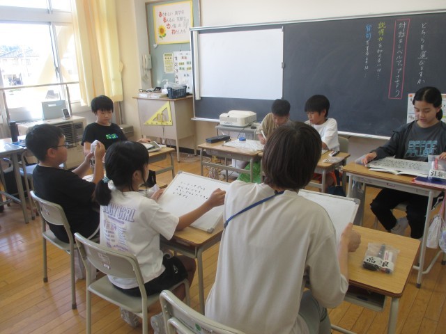 5年生の国語科では、テーマに沿って考えを伝え合う学習を行いました。テーマごとに話合いが盛り上がり、説得力のある伝え方について考えていました。6年生の外国語科では、ALTに夏休みの思い出を英語で伝えました。学習した過去の表現を使って、思い出を伝えることができました。