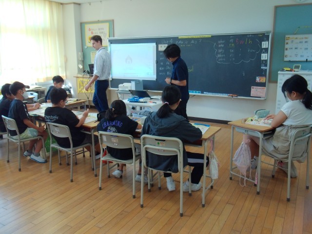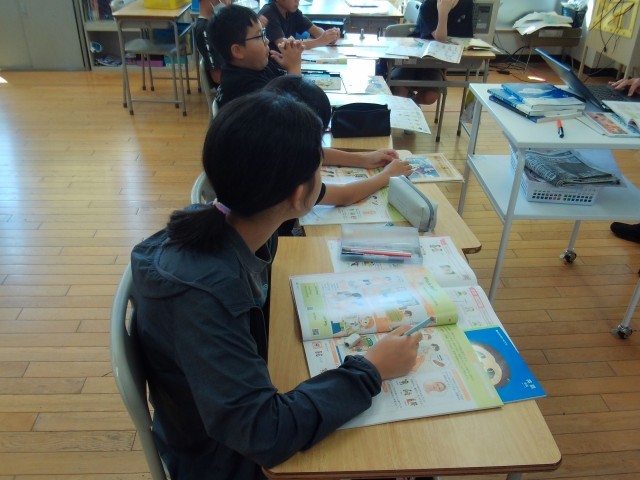 英語での話を聞いて、誰の、どんな説明をしているのかをよく聞き取って答えていました。「He」が男の人、「She」は女の人を指すことも手がかりになります。5年生は、日本での「シュークリーム」が、英語では通用しないことにびっくりしていました。