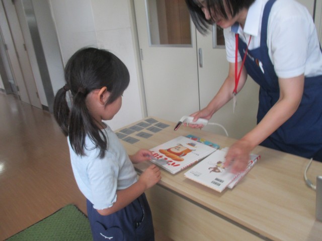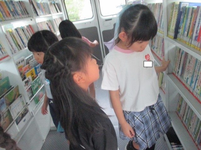 2学期最初の自動車文庫の日でした。読んでみたい本やお気に入りの本をうれしそうに選んでいました。「お願いします」「ありがとうございました」の挨拶も上手な1年生です。