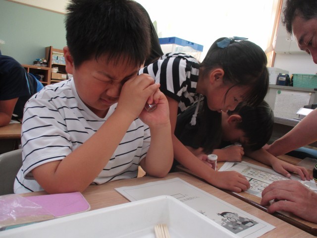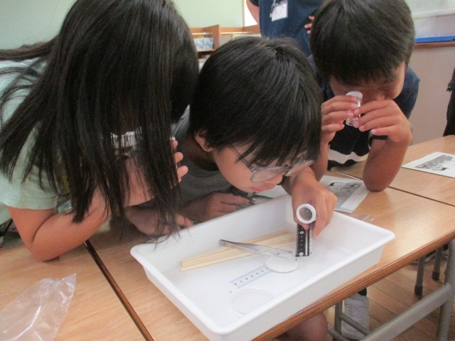 3、4年生は「小さな生き物の観察」をしました。虫眼鏡がついたケース「みるべえ」使って、小さな生き物の観察をしました。「色・大きさ・形」に着目しながら、いろいろな生き物をくわしく見ることができました。これから、理科の学習でも続けていきましょう。