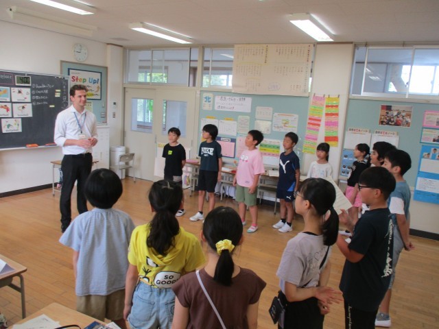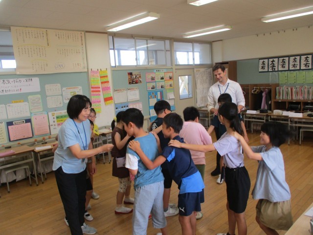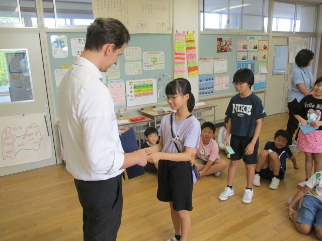 今日は、今までお世話になったALTとの最後の学習の日でした。英語をつかったゲームをした後、歌と寄せ書きのプレゼントをしました。楽しい外国語活動の時間をありがとうございました。