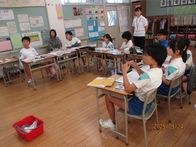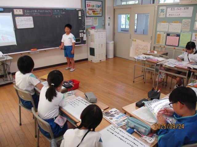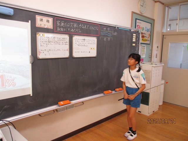 災害からくらしを守るために、自分たちにできることを調べて発表しました。友達の発表や家庭での取り組みを聞き、「自助」についての意識を高めることができた子供たちです。