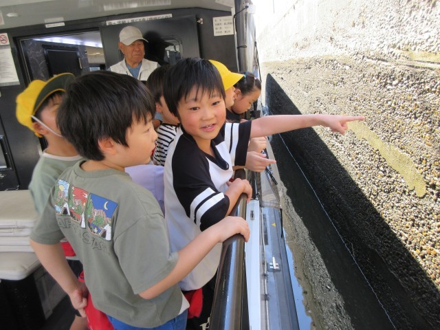 環水公園では、富岩水上ラインに乗船し、水のエレベーターを体験しました。船が上がったり下がったりするのを見て、子供たちから歓声が上がりました。噴水広場でも楽しく遊びました。