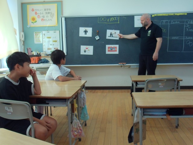 先々週、お別れしたALTの代わりの先生が来られました。今日は、クイズ形式で自己紹介をしてくださいました。