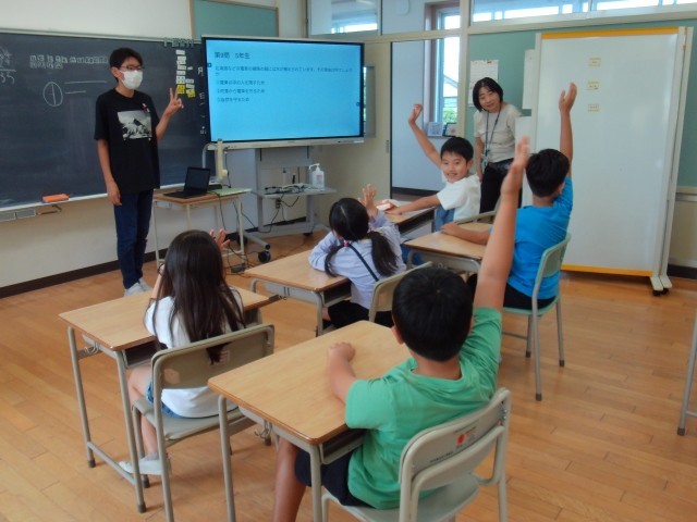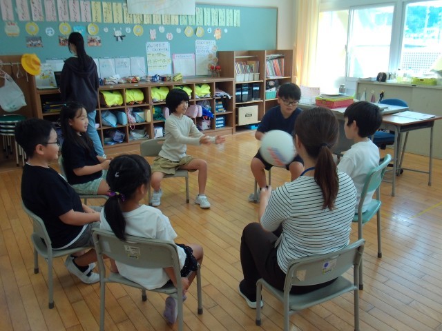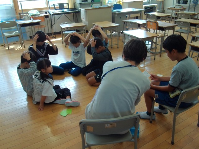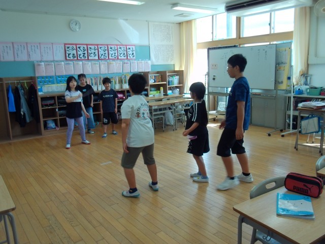 ひまわりタイムに、ファミリー班活動を行いました。今日は、5、6年生が班のみんなで遊ぶ遊びを考え、進めていました。