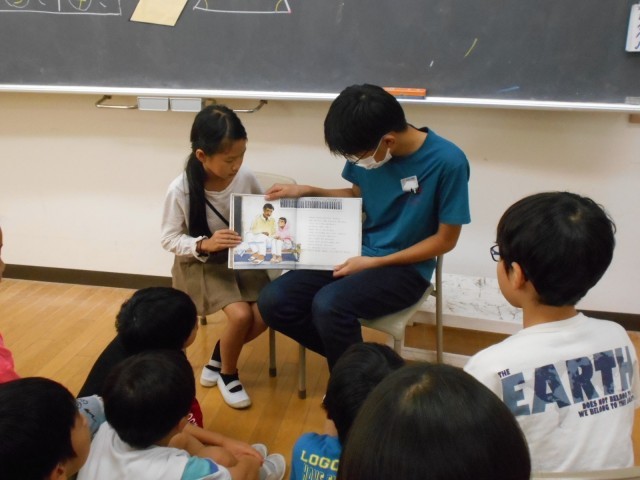 先日に続き、今日は2年生教室へ読み聞かせに行きました。事前に役割分担を考え、みんなが聞きやすいように声の大きさやスピードに心がけ、読んでいました。2年生から「もっと聞きたい!」という声が聞かれ、本に興味をもってもらい、うれしそうな委員会メンバーでした。