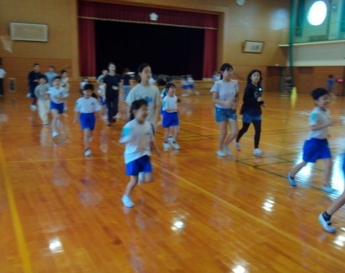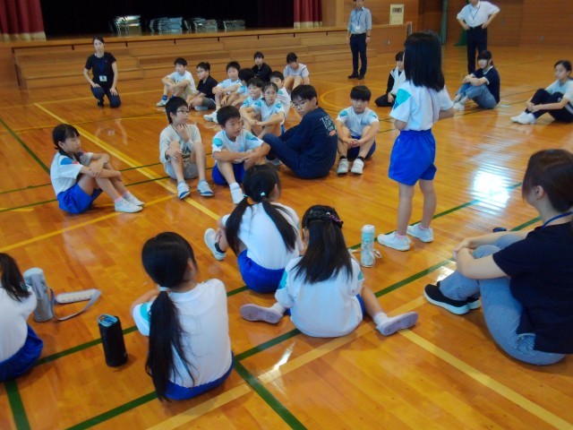 振り返りの時間には、「自分の目当てを達成できてうれしかった」「この次は、あと1周多く走りたい」と話す子供たちです。発表している1年生の話を、しっかりと聞こうとしている姿もすてきでした。