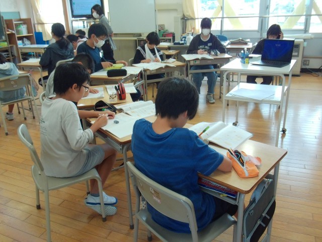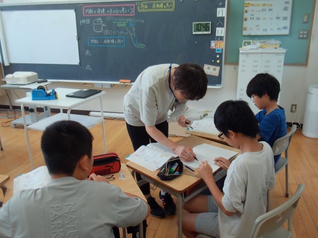 円周率を含む計算はややこしいですが、正確に計算して求めようと真剣に取り組んでいます。面積と体積の単位にも気を付けていきましょう。
