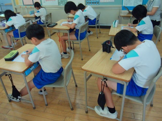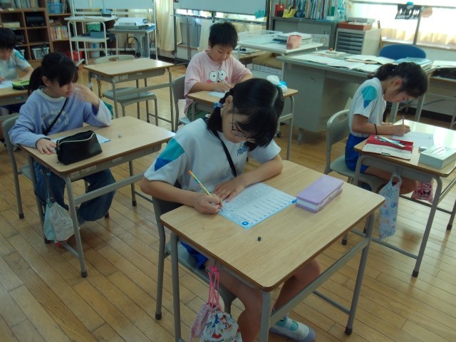 3、4年生は、計画的に漢字練習に取り組んでいます。今日の朝の時間には、漢字を正しく覚えられたか確かめるミニテストをしていました。間違いがあったときはすぐに間違いを直し、しっかりと覚えられるように練習をしている姿が立派です。