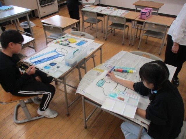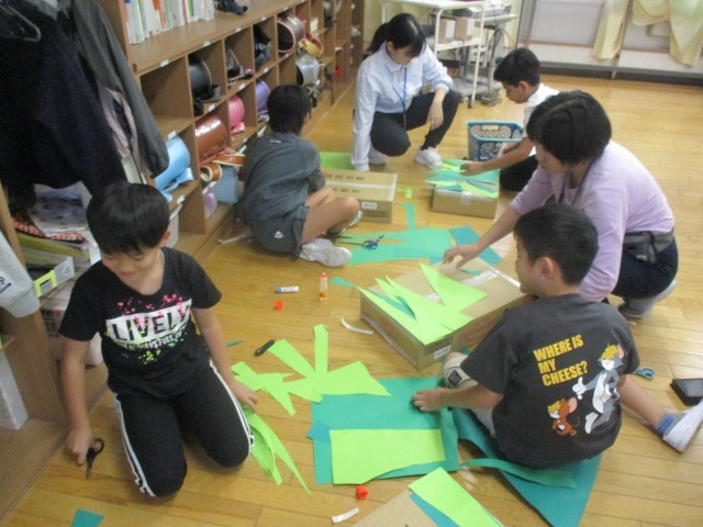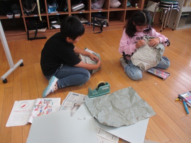 学習発表会で使う小道具作りをしました。劇の雰囲気を盛り上げるために、グループで協力しながら作っていました。本番をお楽しみに!