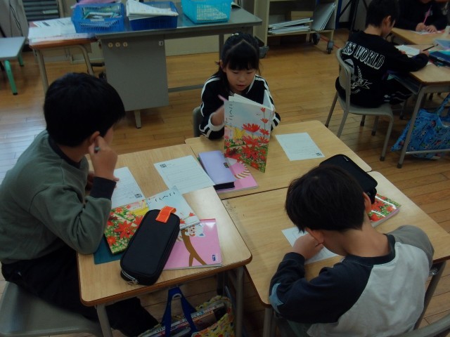 「お手紙」の学習では、自分たちが立てた問いについて自分の考えをもち、その後グループで話し合って考えを深めています。今日も、グループで自分の考えを伝えたり、友達の考えを聞いたりする姿が見られました。