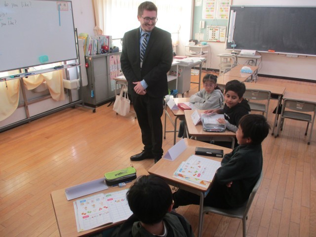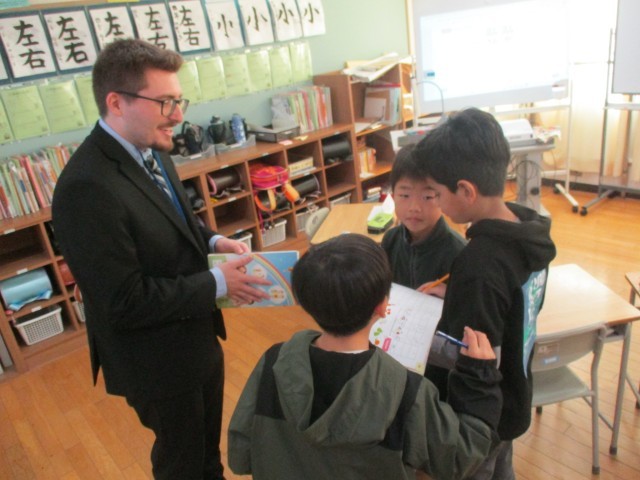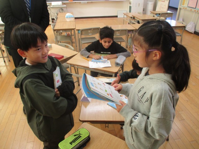 外国語活動の様子です。ALTと楽しく会話しながら学習しています。少しずつ英語での会話もスムーズになってきました。