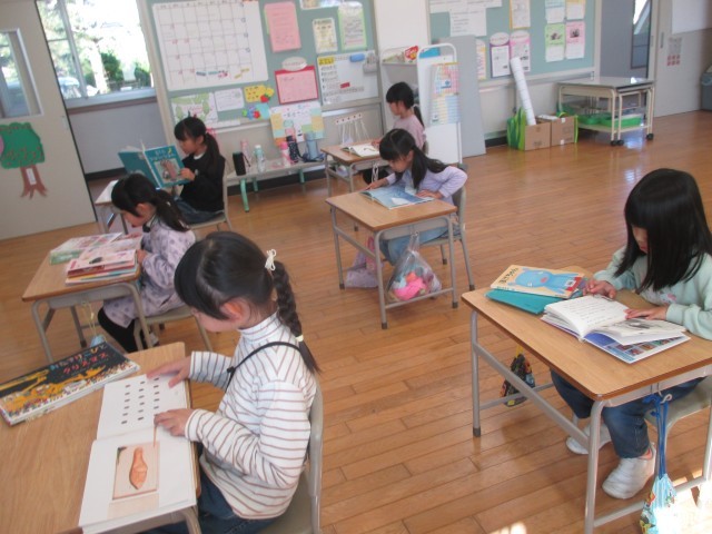 かたかなや漢字も学習して、すらすらと本の文字を読むことが上手になってきた1年生。読書タイムには、自分の読みたい本をじっくり読んでいます。