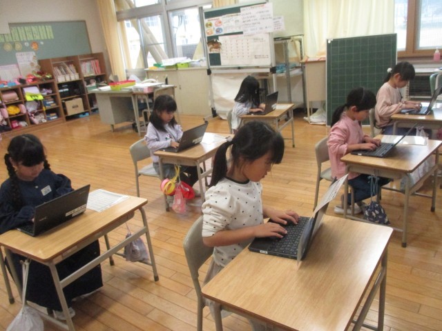 クロームブックの使用にも慣れてきた1年生は、今日タイピング練習に初挑戦しました。これからも、楽しみながら上達してほしいと思います。