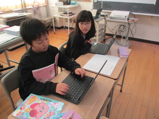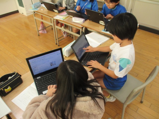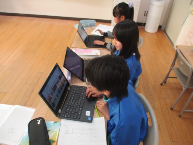 国語で学習した説明文をもとに、伝統工芸品についてのリーフレットづくりをしています。今日は、「はじめ」「中」「終わり」の文の組み立てを意識しながら、パソコンを使って内容を考えました。タイピングがとても上達しており、スムーズに文章を書くことができました。