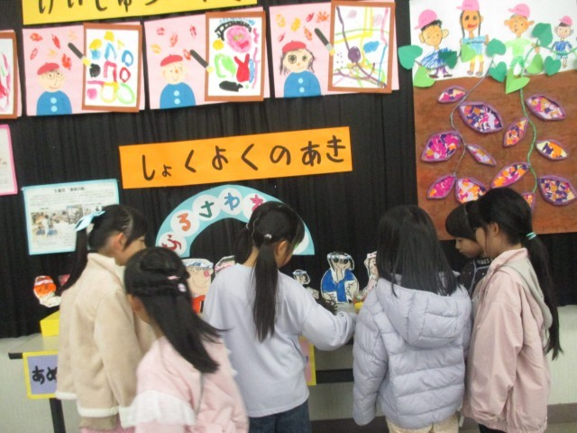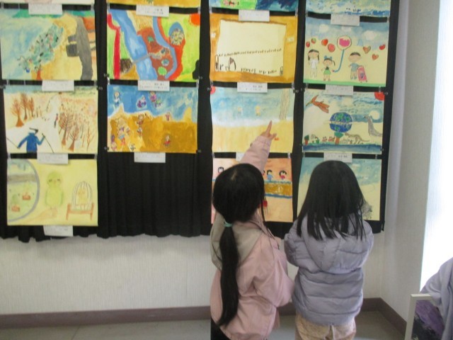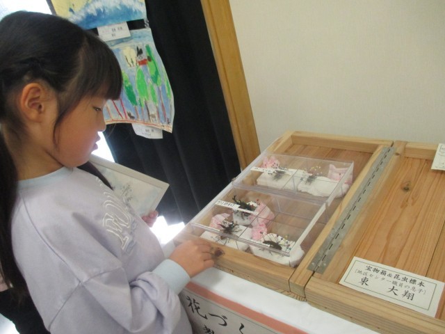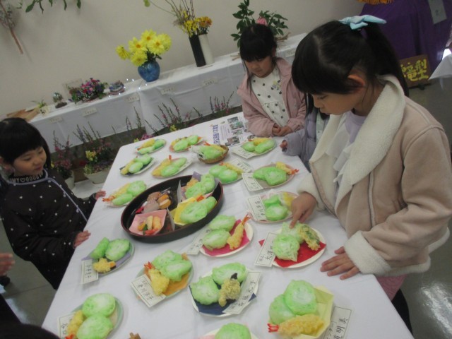 地域の作品展の見学に行きました。地域の方や他の学年の友達の作品を「次はこれ作ってみたいな」「すごいな」とワクワクしながら見ていた1年生でした。自分の作品が飾られているのも、とてもうれしそうでした。