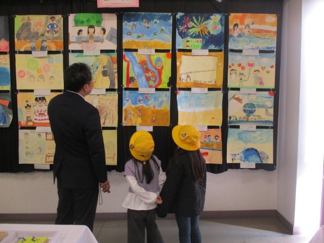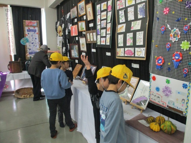 様々な種類の作品がたくさん展示されていて、子供たちは興味のある作品を見て回りました。見に来ておられた地域の方にもしっかりと挨拶ができました。