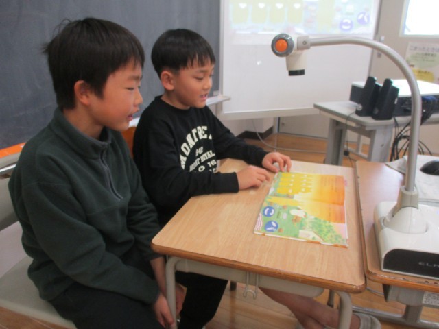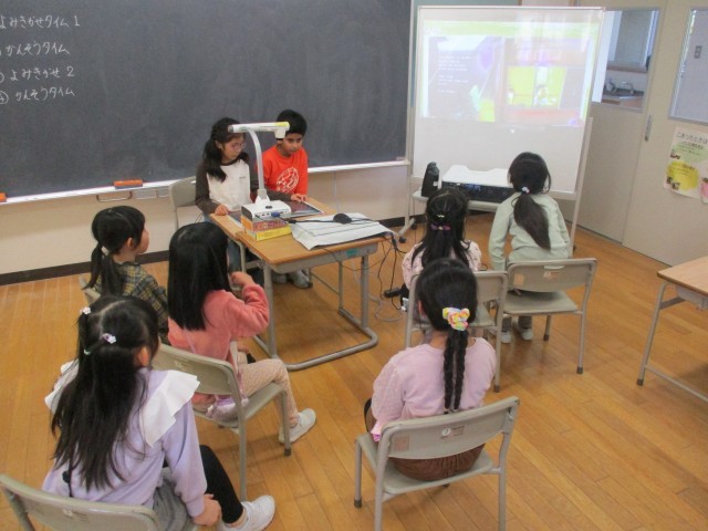 「1年生に本を好きになってもらう」という目的で選んだ本の読み聞かせをしました。一人で読むところ、二人で読むところ、声に変化をつける、ゆっくりと分かりやすく読むなど、たくさんの工夫が伝わる読み聞かせでした。1年生から、いろいろな感想をもらい、達成感いっぱいの3年生でした。1年生のみなさん、第二弾もお楽しみに!