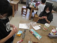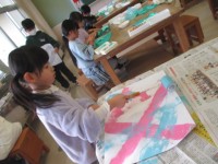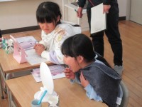 空き箱の形を写し取って絵をかきました。同じ箱でも面によって形が違うことに気付きました。また、どんな空き箱を使ったか説明することもできました。いろいろな形を使ってかくのが楽しかったようでした。