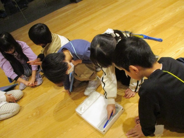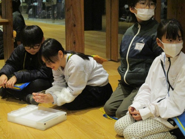 ガラス美術館では、まず、実際にガラスの見本に触ることができました。軽いもの、重いものや不透明なもの、丸い形や細長い形など、いろいろあり作り方が違うことに気付きました。
