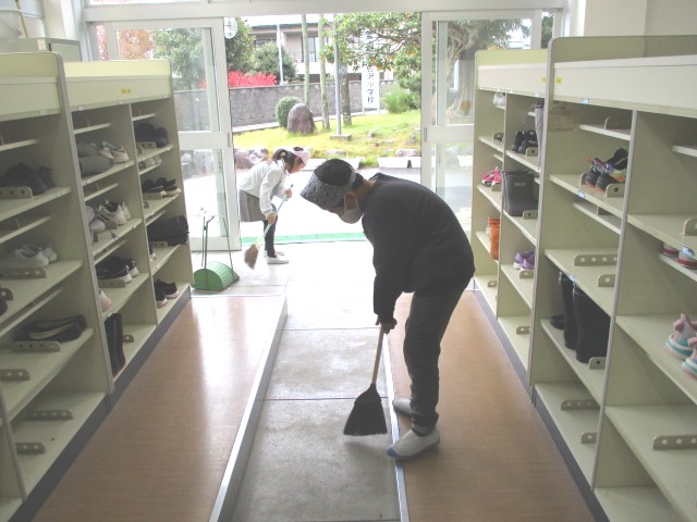 今日は、肌寒い日になりましたが、ファミリー清掃の時間には、寒くても古沢っ子は真剣に清掃に取り組んでいます。児童玄関の砂を掃いたり、水は冷たいですが洗面所を洗ったりするなど、一生懸命にきれいにしようとしていました。トイレ掃除は、低学年の子たちが頑張っていました。
