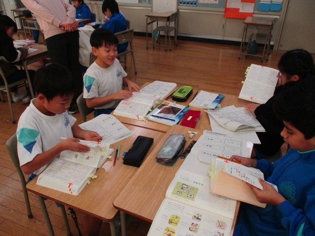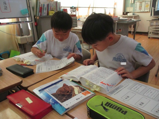 今週は、国語の学習で国語辞典を使う機会がたくさんありました。1学期に学習した索引の方法を生かして、ことわざや故事成語の意味を調べました。4人で協力しながら活動し、たくさん調べることができました。