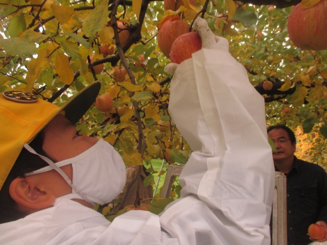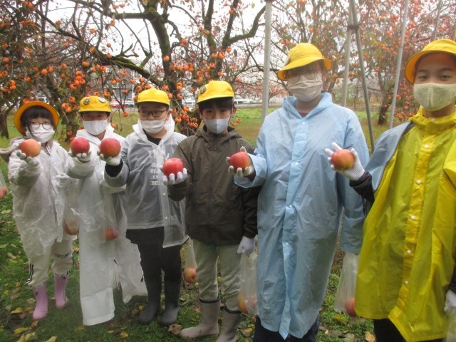 池多小学校の5年生さんと合流し、はじめにあまさか農園へ行きました。なかなか体験することができないりんごの摘み取り体験をさせていただきました。自分の手で選んだりんごを収穫するのはとても楽しく、どれを採ろうが子供たちは悩むほどでした。1人につき2つずつ摘み取らせてもらい、そのままお土産としていただきました。おいしいりんごの見分け方やりんごの木の育て方など、たくさん教えてくださいました。