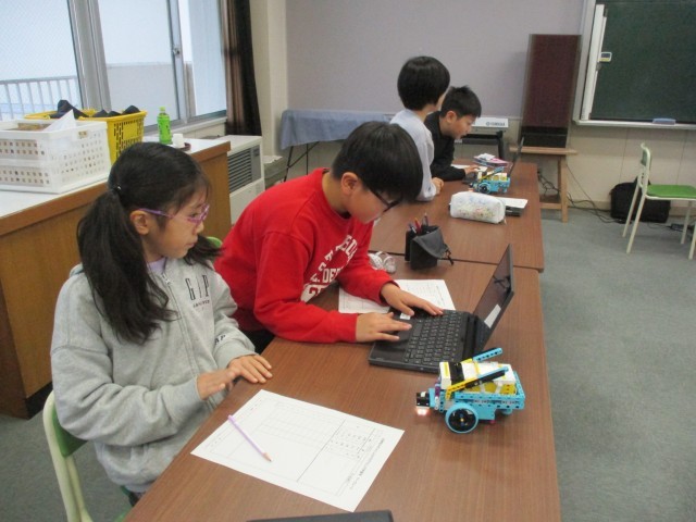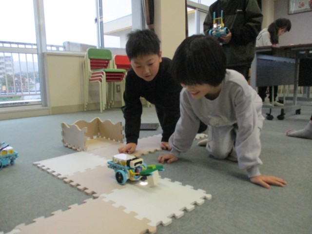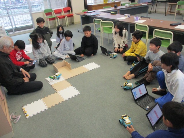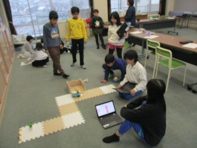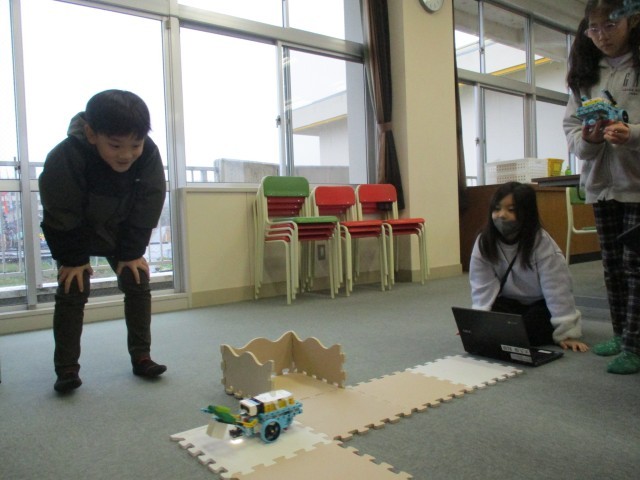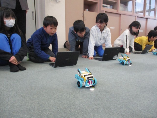 今日は、子供たちが楽しみにしていたプログラミング教室でした。3、4年生は、野菜をゴールまで運ぶというミッションをクリアするために、プログラムを考えロボットを動かしました。「右に曲がるには?」「後ろへ進むには?」など、ロボットを思い通りに動かすために何度もチャレンジしながら楽しみました。最後に先生から「何度もチャレンジして失敗することでできるようになる」というお話をしていただきました。この学習を他の活動にも生かしていきたいと思います。