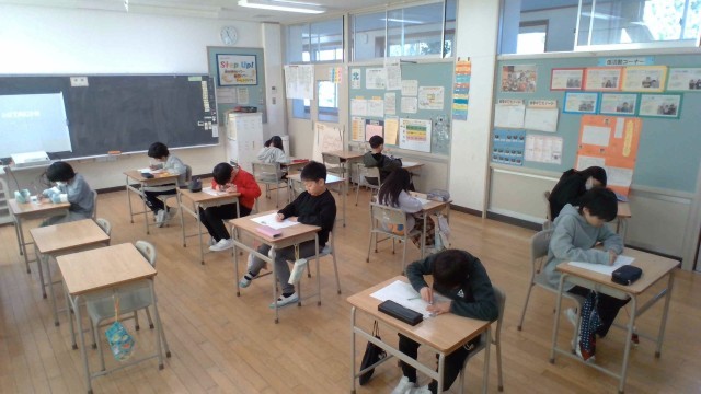 今日は、算数科の2学期末の学習のたしかめを行いました。これまでの学習の成果を発揮しながら、集中して取り組んでいます。