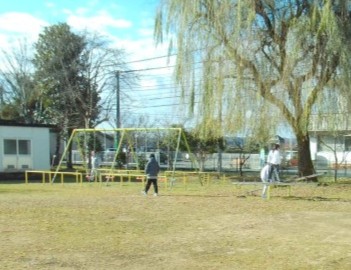 子供たちは、大休憩に外に出て遊具で遊んだり、思い切り築山まで走ったりしていました。元気に遊んでいます。