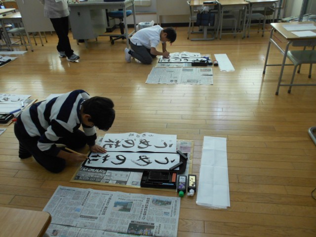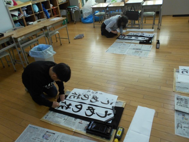 書き初め練習2回目です。今日は、初めて本番のように床で練習しました。一文字一文字集中して書くことができました。自分の作品を眺めて、次の練習への目標がもてたようです。