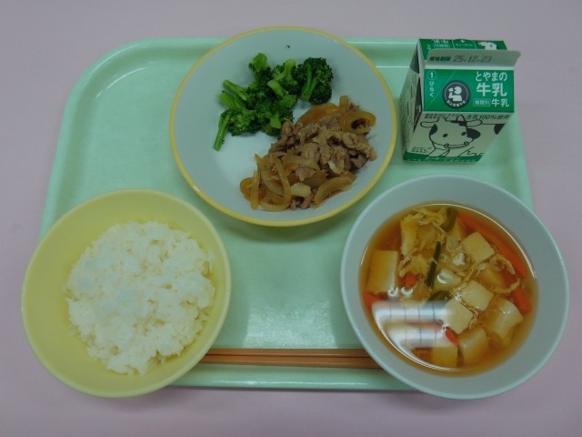 豚肉のジャンローは、豚肉の中華風しょう油煮のことで「醤肉」と書くそうです。給食では、豚肉と玉ねぎを、しょう油、しょうが、さとう、酒で味付けしてあります。ごはんがどんどん進む味付けでした。