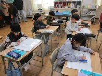 2学期最後の4分間走です。子供たちは、自分の自己ベストを超えようと今まで以上に気合が入っているのが伝わってきました。ラスト1分では、どの子も最後の力を出し切るようにスピードを上げて走ることができました。