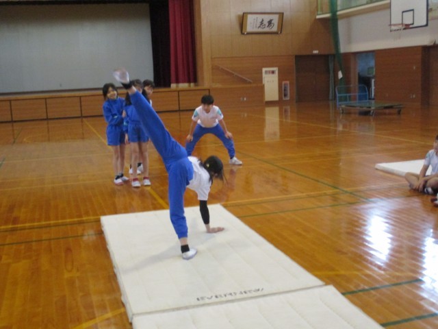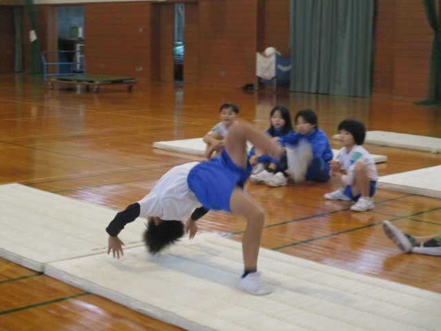 マット運動最終日でした。今日は一人一人ができるようになった技を発表しました。たくさん練習を重ね、できなかった技ができるようになったことに喜びを感じている子供たちでした。