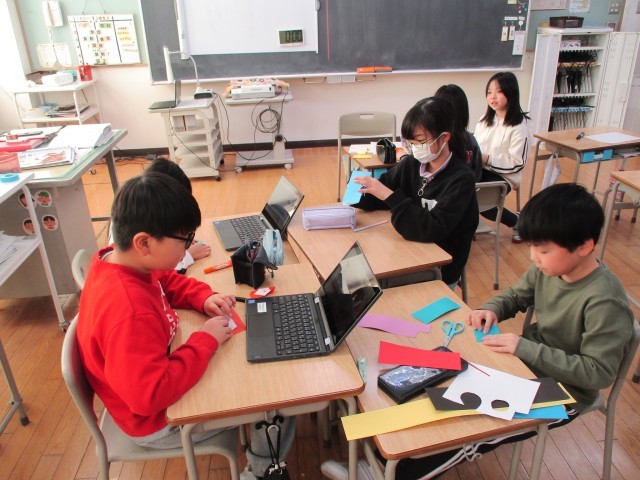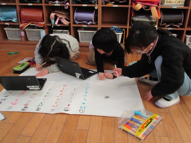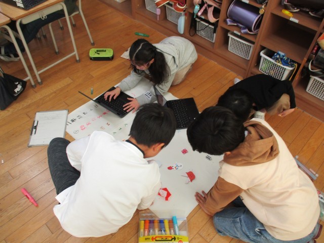2学期末の学級集会の準備が進んでいます。集会の内容をみんなで話し合い、今回は今までにしたことがないような遊びに挑戦することになりました。ルールづくりや用具の準備、飾りの作成など、楽しそうに取り組んでいました。
