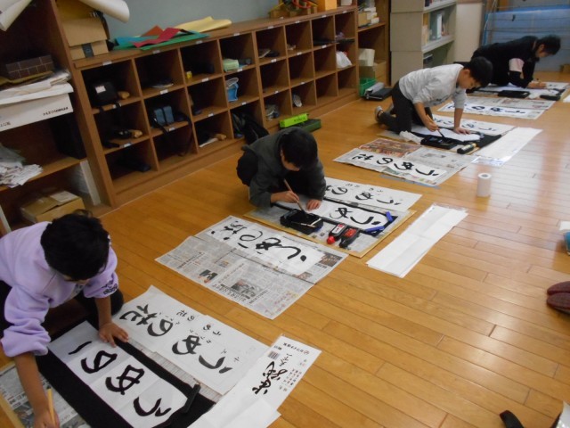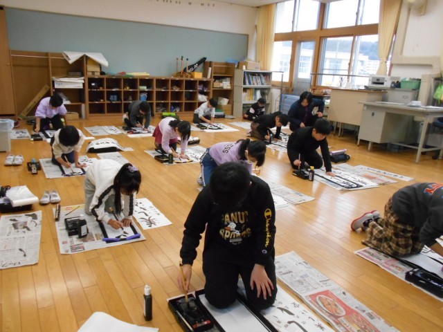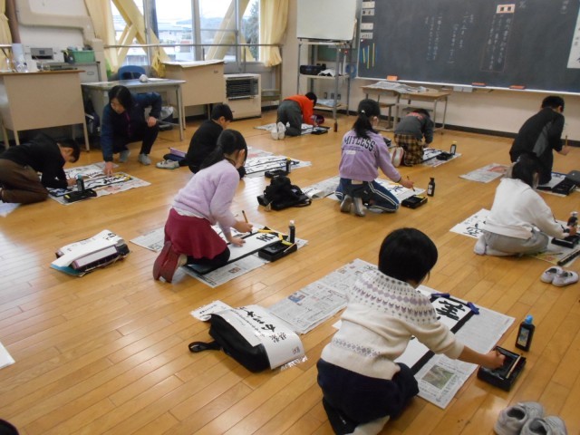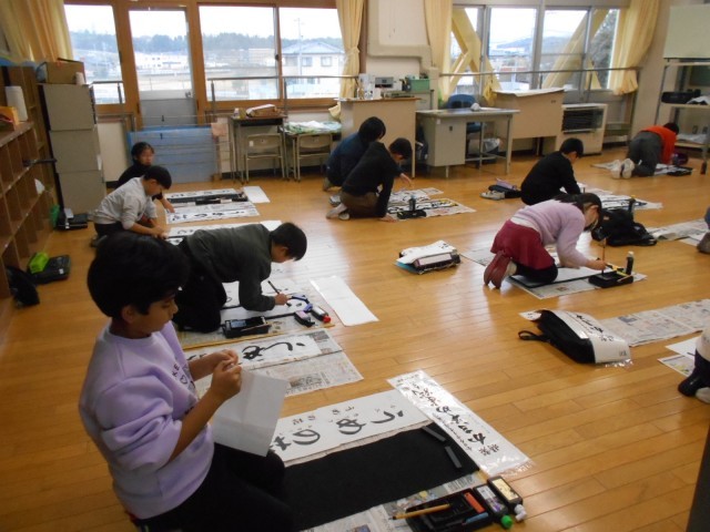 いつもは別々の時間に練習している3・4年生の書写の授業ですが、今日は、1月8日の校内書初大会に向けて一緒に練習しました。そして、本番と同じように作品を仕上げました。4年生は、3年生のお手本となるような素敵な姿を見せてくれました。また、3年生は、4年生の姿を見て、いつも以上に集中して一生懸命取り組んでいました。