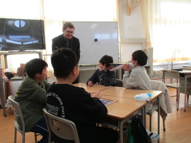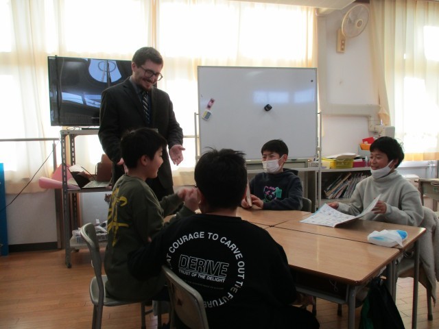 今日の外国語科の学習の終わりに、2チームに分かれてゲームを行いました。今まで学習した英語の表現を使って、ALTの先生から英語で質問されたことに英語で答えるというものです。5年生は、学習したことを思い出しながら、英語で答えていました。「OK!」だと、カードによってポイントがもらえるはずですが・・・マイナスあり、ポイントの入れ替えあり、またゼロにもどることもありました。逆転、また逆転で、最後まで勝敗が分からない展開に、子供たちは楽しく活動していました。