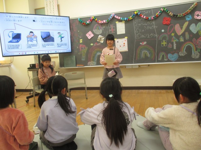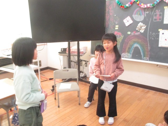 学級でお楽しみ会をしました。それぞれの係が楽しいゲームやクイズ、マジック、プレゼントを準備して発表しました。どの係の発表も、みんなが笑顔いっぱいになる、とても楽しい時間でした。