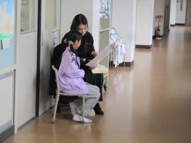 終業式後、担任から、一人一人に「あゆみ」を渡しました。子供たちは「あゆみ」を見ながら、2学期の取組、がんばり、成長など担任の話を真剣に聞いていました。