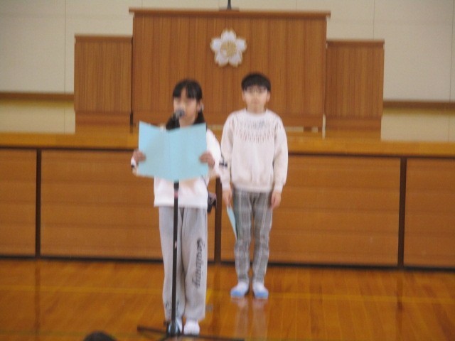 第2学期終業式を行いました。校長先生のお話や代表児童の発表を聞き、「冬休みもがんばるぞ」と、気持ちが引き締まった様子でした。安全で楽しい冬休みにしてくださいね。