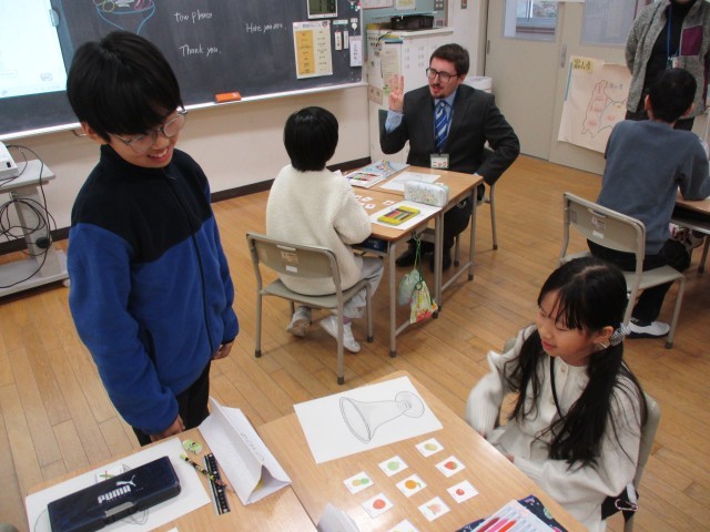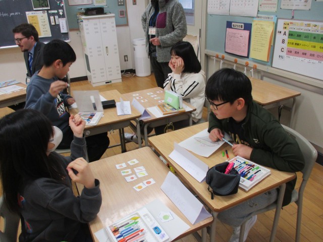 「What do you want?」の学習をしています。今日はペアでほしいものを尋ね合いながら、オリジナルパフェを作りました。欲しいものを尋ねたり答えたりする会話がとてもスムーズになりました。
