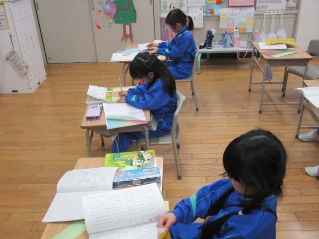 今年度68号となる、全校児童の作文を載せる文集「ひまわり」に、1年生は初めて作文を載せることになります。これまでの文集には、どのようなことが書かれているのかを読みながら、一生懸命考えていました。