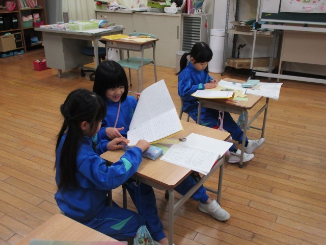 1年生は、入学してからの1年間を振り返って、心に残ったことを文で表現しようとがんばっています。