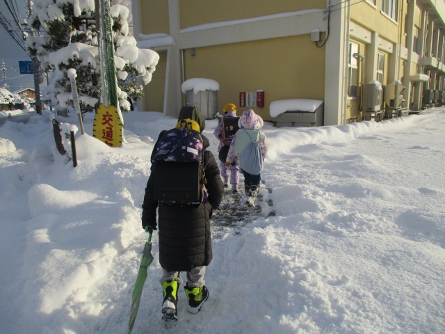 強い寒波の影響で、先週から大雪に見舞われています。子供たちのために、朝早くから通学路の除雪をしてくださる皆さん、本当にありがとうございます。これからしばらく、いつも以上に気を付けて登下校してほしいと思います。