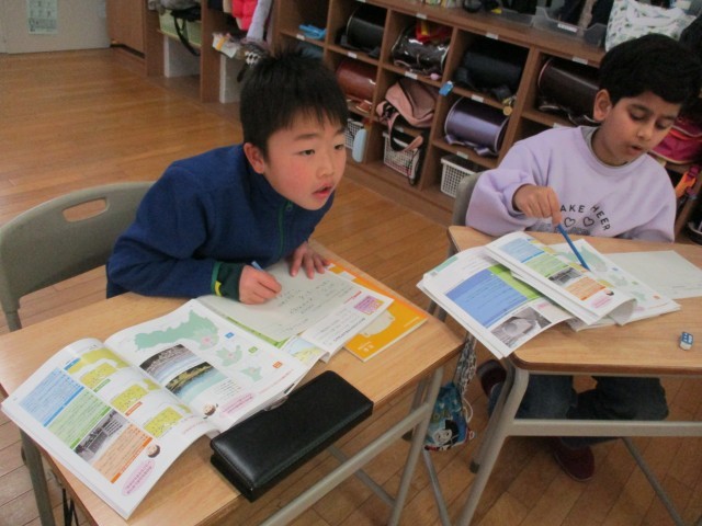社会科では、くらしのうつりかわりについて学習を進めています。今日は富山市の土地の使い方の変化を地図から読み取りました。真剣に資料をみながら、取り組む3年生です。