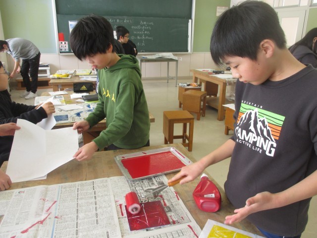 1月28日(水)5・6年生 一版連結版画