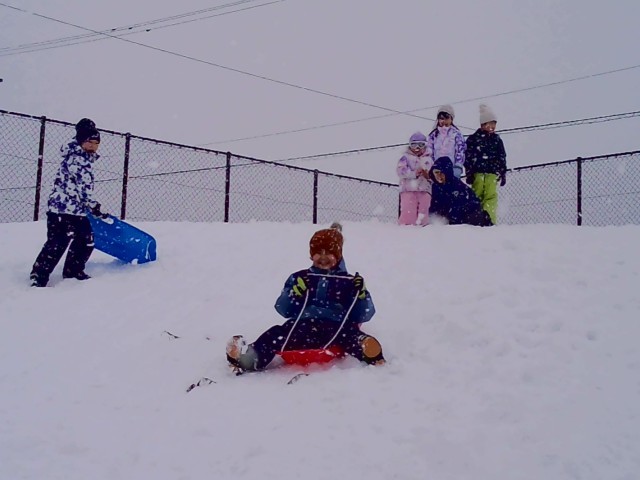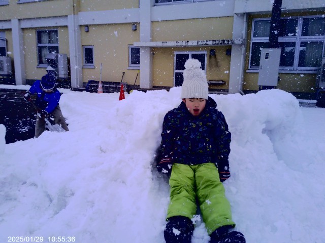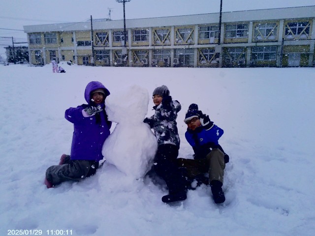 2年生も雪遊びをしました。大きな雪だるまを作ったり、そりで滑ったりして楽しく活動しました。